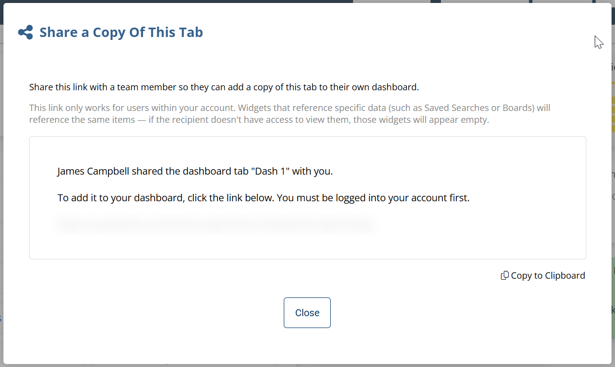 You can now share any saved search using the link found on the saved search screen. These links are especially useful for setting up dashboard widgets, allowing your team to sync their contact counts and stay aligned on key metrics.