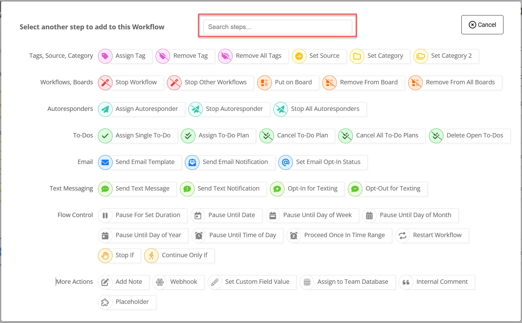 Search Workflow Action Steps