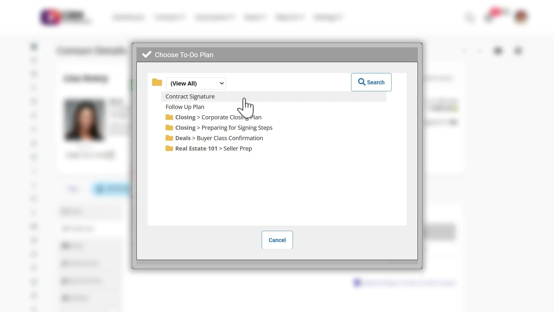 Let’s go over to the client record and we’ll see what the To-Do Plan looks like when we add it to a Contact.