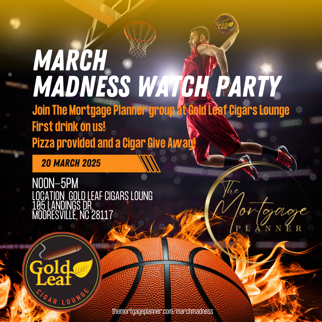 Welcome to The Mortgage Planners Gold Leaf Cigar's exclusive NCAA March Madness watch party! As the excitement of college basketball's most exhilarating tournament fills the air, join us for an unforgettable experience starting at noon on the first day of March Madness, March 20.